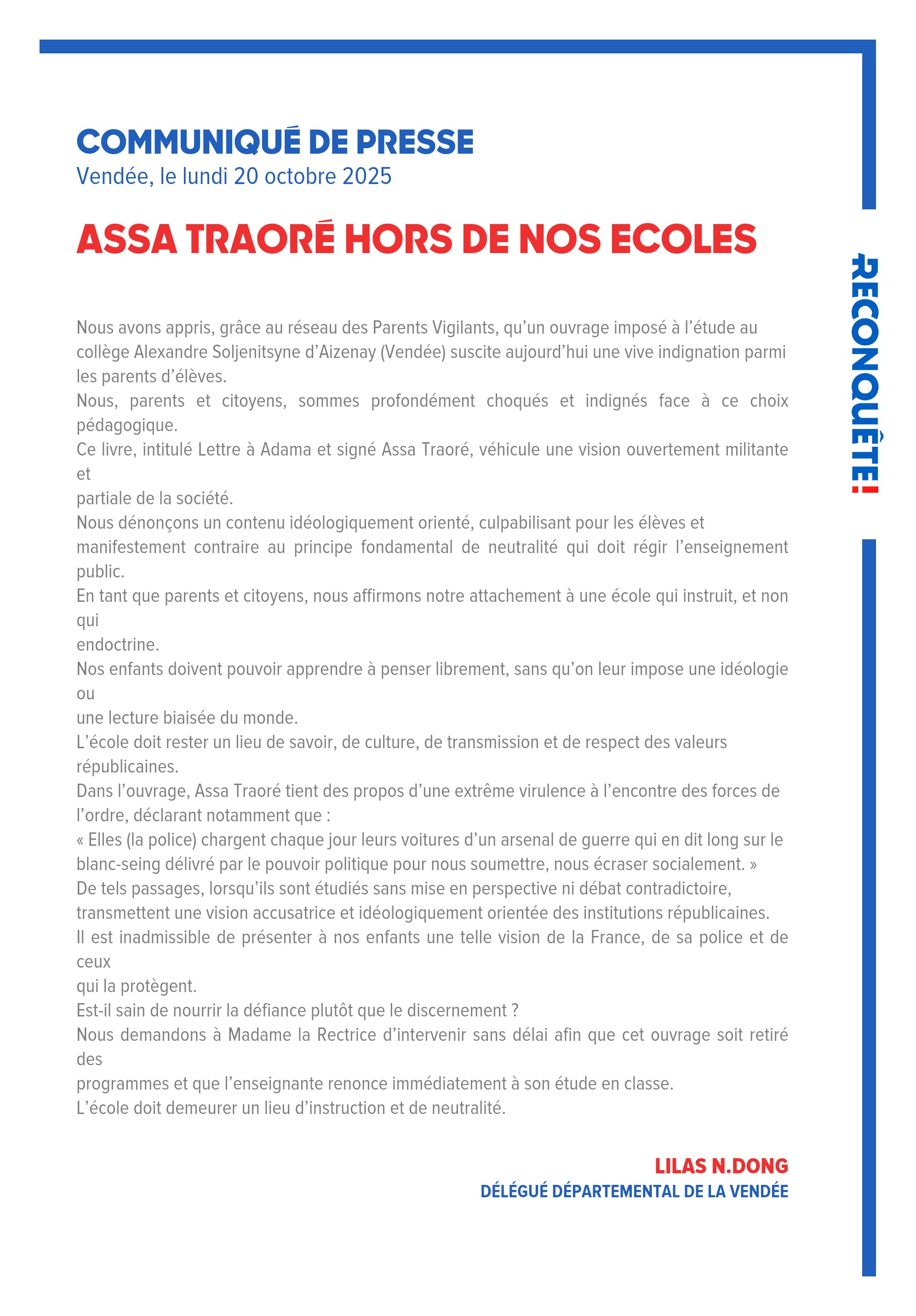 Nous dénonçons un contenu idéologiquement orienté, culpabilisant pour les élèves et